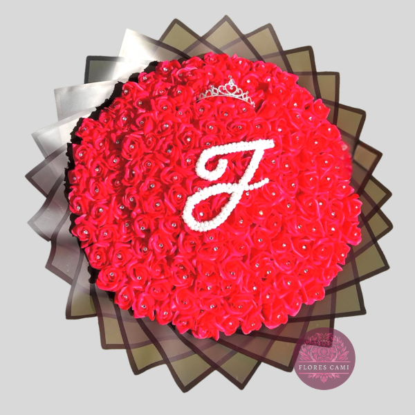 Espectacular ramo de 150 rosas eternas de jabón con centro decorado mas linda inicial personalizada (letra elegida por remitente) mas hermosa diadema y fina envoltura de papel coreano y rosetón con cinta de tela.