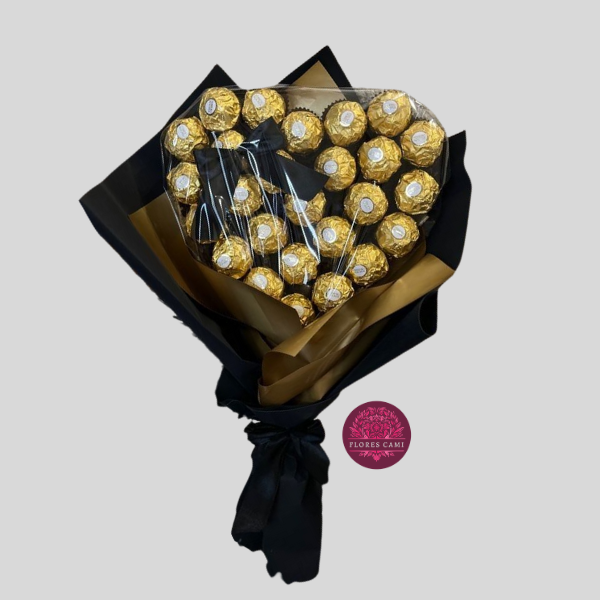 Lindo Ramo en forma de corazón con 30 deliciosos bombones , fina envoltura de papel coreano y lazo con cinta de tela